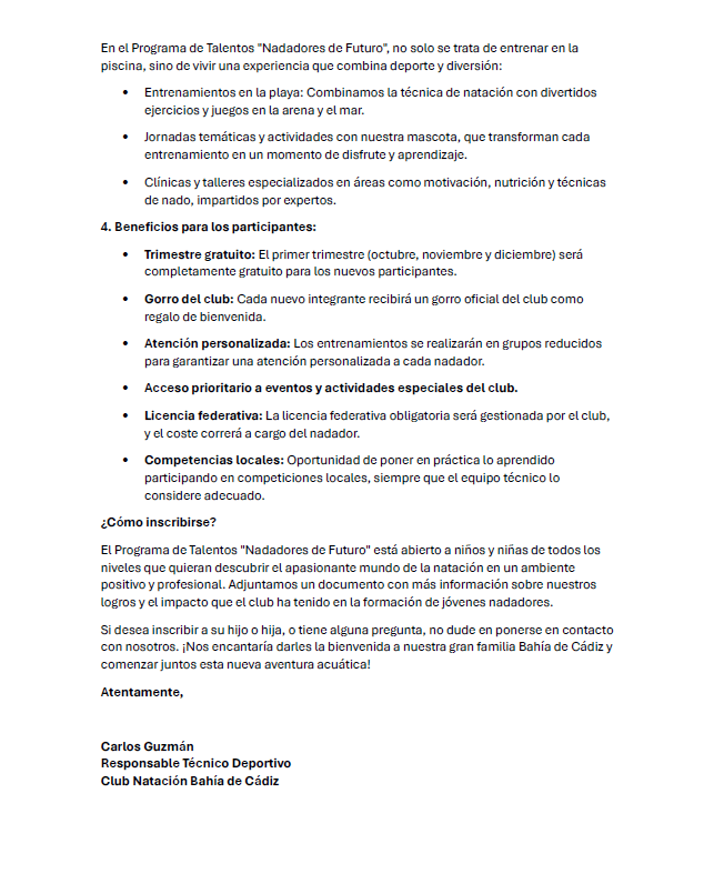 - Vive la experiencia CLUB NATACIÓN BAHIA DE CÁDIZ: A partir de octubre comenzaremos los entrenamientos en nuestras instalaciones, con un enfoque integral para cada niño/a.